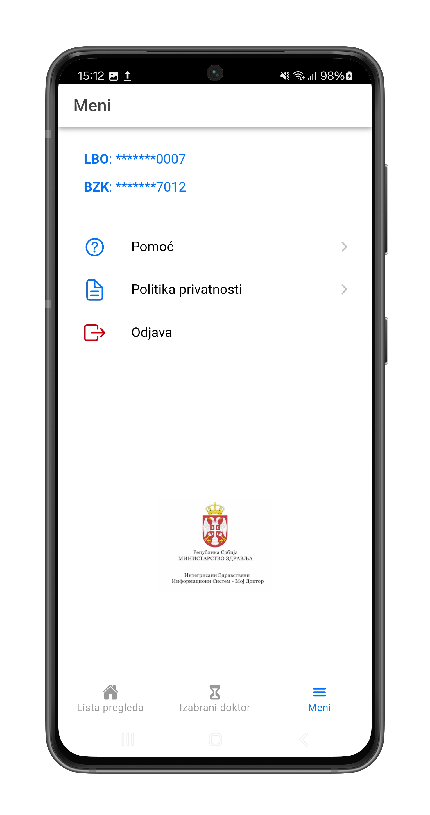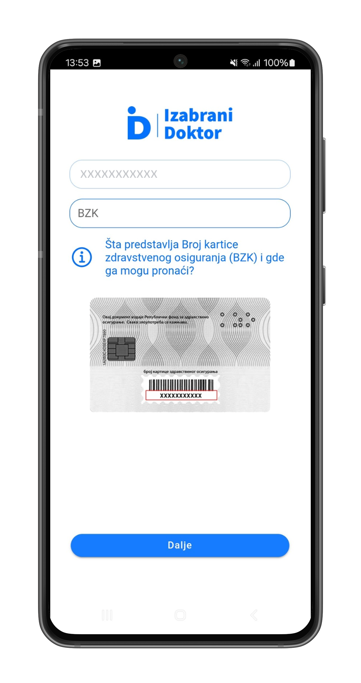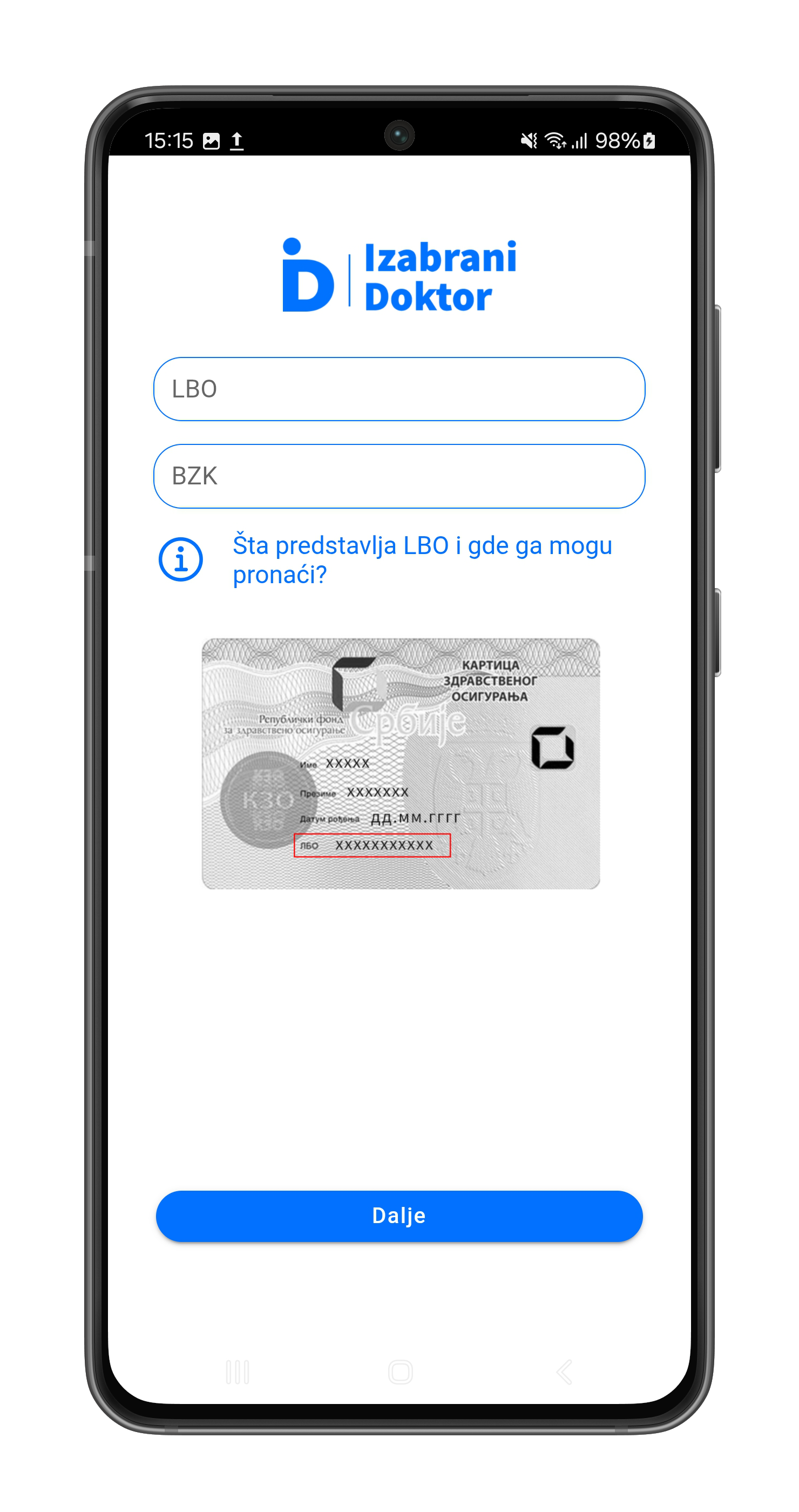 Nakon unosa validnog LBO-a, potrebno je uneti broj zdravstvene kartice BZK-a.